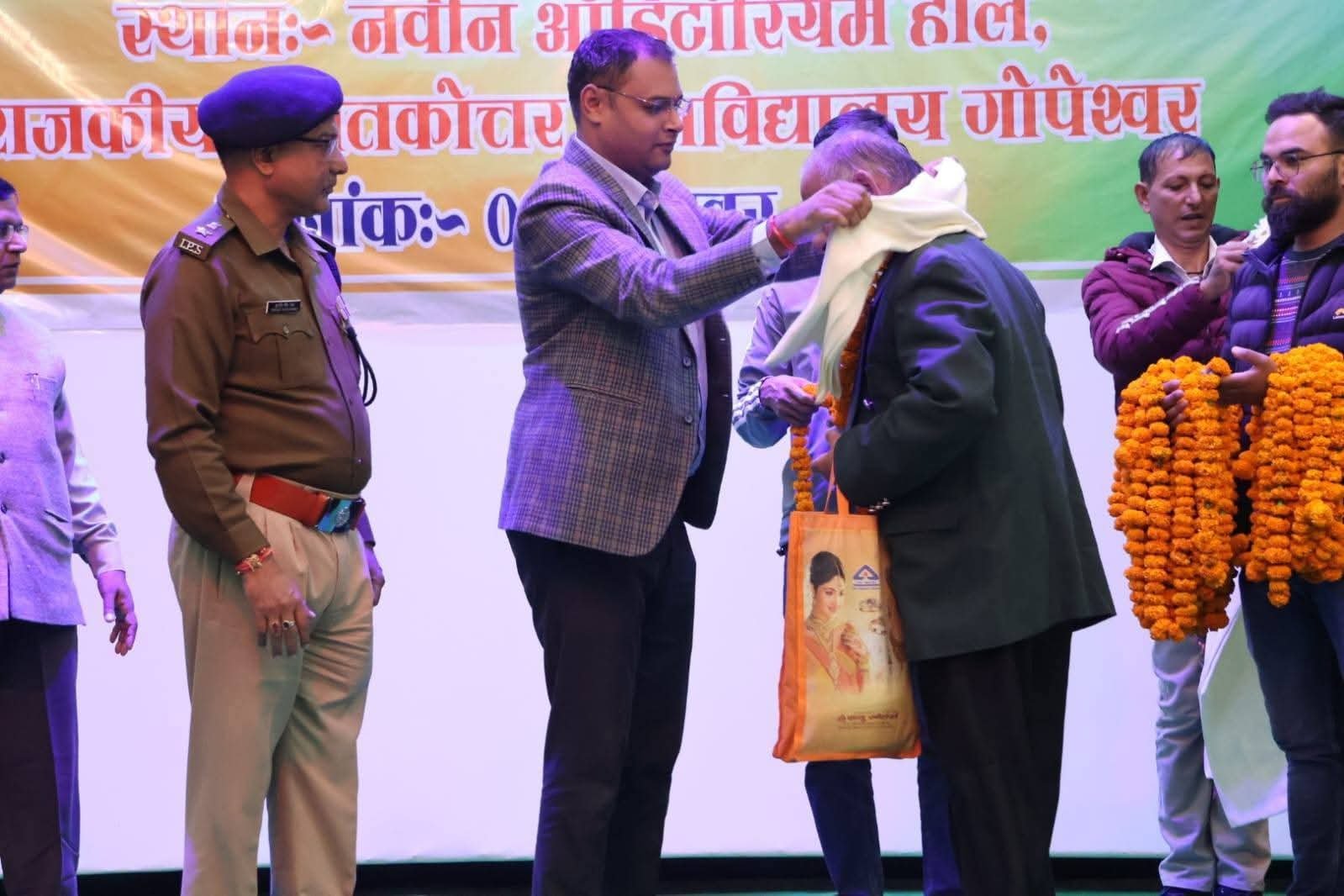 उत्तराखंड राज्य स्थापना के 25 वर्ष पूर्ण होने के उपलक्ष्य में शनिवार को राजकीय स्नातकोत्तर महाविद्यालय गोपेश्वर में उत्तराखंड राज्य आंदोलनकारी सम्मान समारोह का आयोजन किया गया। कार्यक्रम की शुरुआत राज्य निर्माण में योगदान देने वाले शहीद आंदोलनकारियों के चित्रों पर माल्यार्पण कर की गई।कार्यक्रम में उपस्थित राज्य आंदोलनकारियों एवं अतिथियों ने राज्य निर्माण की ऐतिहासिक यात्रा को स्मरण किया तथा स्थापना दिवस के महत्व पर अपने विचार साझा किए। इस अवसर पर महाविद्यालय के छात्र-छात्राओं ने आकर्षक सांस्कृतिक प्रस्तुतियाँ देकर उपस्थित जनों का मन मोह लिया।