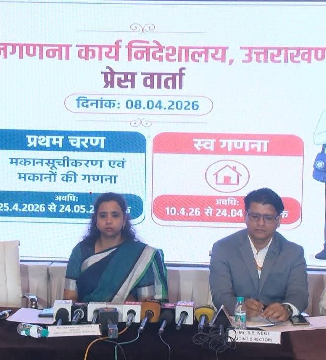 पीआईबी देहरादून के सहयोग से जनगणना कार्य निदेशालय, गृह मंत्रालय, भारत सरकार द्वारा आयोजित प्रेस वार्ता में श्रीमती इवा आशीष श्रीवास्तव, निदेशक, जनगणना कार्य निदेशालय, गृह मंत्रालय ने बताया कि उत्तराखण्ड में जनगणना के प्रथम चरण – मकान सूचीकरण एवं मकानों की गणना का कार्य 25 अप्रैल से 24 मई, 2026 के बीच 30 दिन की अवधि में पूरे राज्य में संचालित किया जाएगा तथा घर-घर सर्वेक्षण से पहले 10 अप्रैल से 24, अप्रैल 2026 के बीच 15 दिन की अवधि प्रदेशवासियों को स्व-गणना के लिए प्रदान की गई है, जिससे प्रदेशवासी अपने मोबाइल नंबर और बुनियादी क्रेडेंशियल्स का उपयोग करके se.census.gov.in पोर्टल पर लॉग इन कर प्रगणक के आने से पहले बड़ी आसानी से अपना विवरण डिजिटल रूप से स्वयं दर्ज कर सकते हैं। स्व -गणना एक सुरक्षित और वेब आधारित सुविधा है, जो 16 क्षेत्रीय भाषाओं में उपलब्ध है।