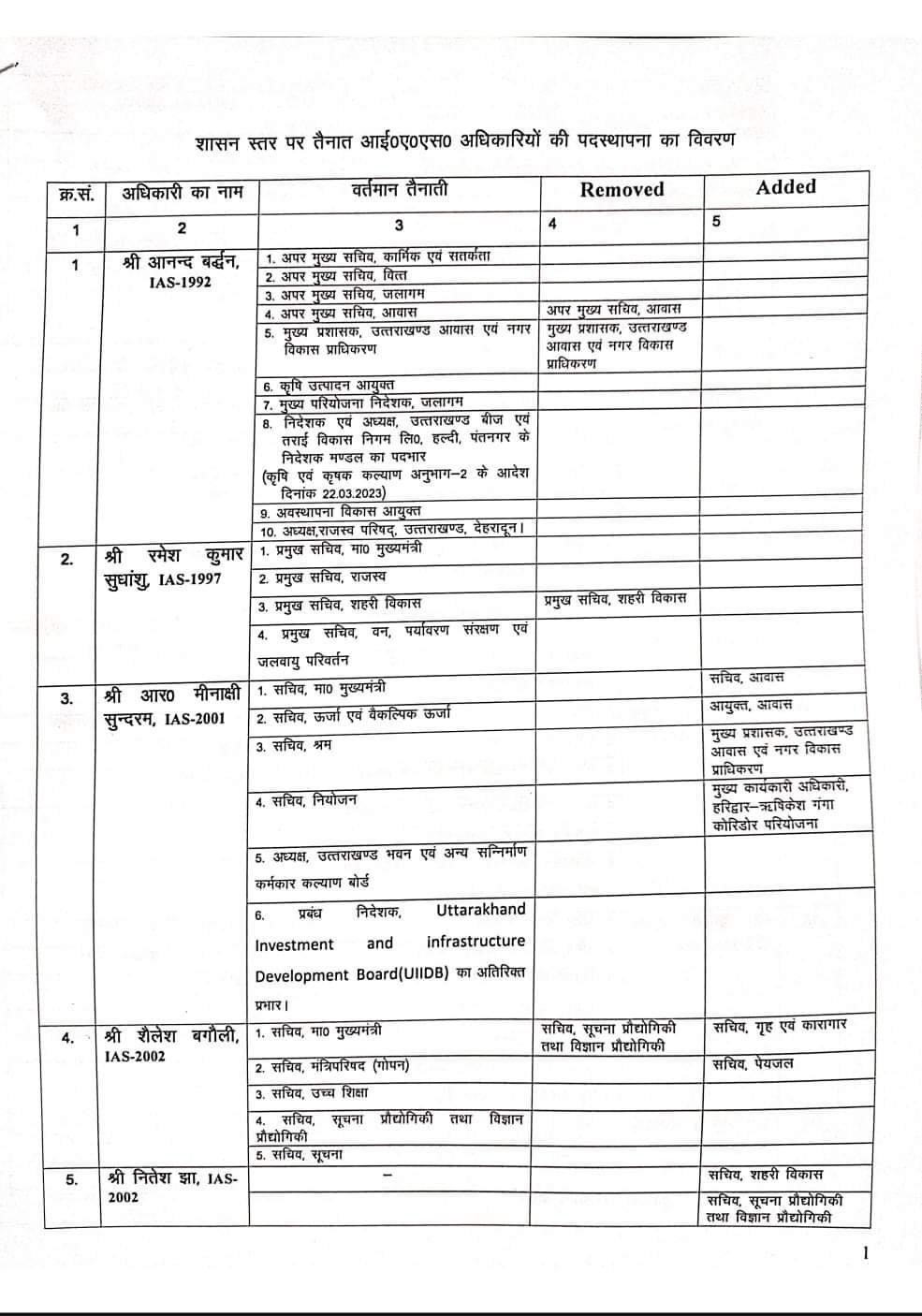 उत्तराखंड शासन में बड़ा फेरबदल हुआ है। सरकार ने 15 आईएएस अफसरों के विभागों में फेरबदल किया है। सचिव रंजीत सिन्हा को लंबे वक्त बाद आपदा प्रबंधन विभाग से हटाया गया है।
