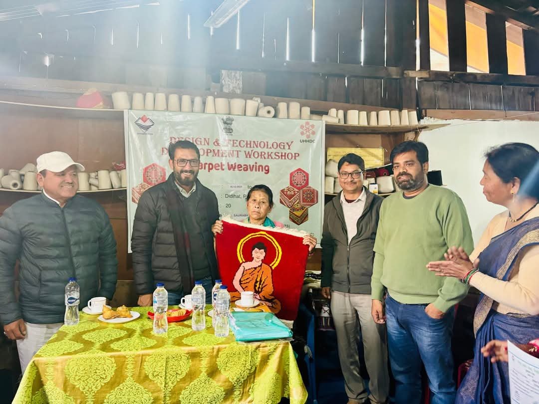 इस दौरान प्रबंधक जिला उद्योग केंद्र पंकज तिवारी ने बताया कि उक्त प्रशिक्षण कार्यकम विकास आयुक्त वस्त्र मंत्रालय भारत सरकार द्वारा प्रायोजित एवं यू०एच०एच०डी० उद्योग निदेशालय के सहयोग से आयोजित किया गया तथा *भारत सरकार मिनस्ट्री ऑफ कामर्स एण्ड। इंडस्ट्री (डीoपी०आई०आइ०टी0) द्वारा वुलन उत्पाद को एक जनपद एक उत्पाद योजना के अंतर्गत भारत सरकार द्वारा जनपद पिथौरागढ़ के लिए चयनित किया गया है।* कार्पेट प्रशिक्षण कार्यक्रम के दौरान 20 महिलाओं को प्रशिक्षण दिया गया जिसमें नये डिजाइन के कार्पेट, आसन, वॉल हेंगिग, योगा मेट आदि तैयार किए गए हैं।प्रशिक्षण डिजाईनर सौरव मिश्रा एवं मास्टरकाप्टमेन पूनम ग्वाल द्वारा प्रदान किया गया। समापन समारोह में पंकज चौहान, वरिष्ठ प्रशासनिक अधिकारी, रिचापाण्डे, सहायक प्रबन्धक एवं व्यवसायी दिवाकर पांगती आदि उपस्थित रहे।