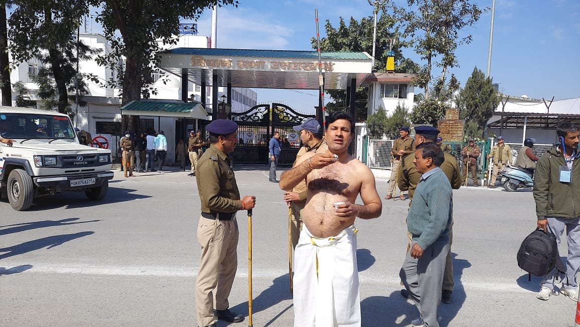 जहां से उन्हें पुलिस ने गिरफ्तार कर लिया। उत्तराखंड के विधायकों एवं मंत्रियों द्वारा विधानसभा सत्र गैरसेंण में न कराए जाने को लेकर ठंड का बहाना बनाया था उन्होंने उत्तराखंड के मुख्यमंत्री कैबिनेट मंत्री और नेताओं को सीख देने के लिए अनोखा ढंग अपनाया। उन्होंने लोकल इंटेलिजेंस और एल आई यू को चकमा देते हुए अपने कपड़े उतार कर विधानसभा गेट के सामने उत्तराखंड बचाओ गैरसेंण जाओ के नारे लगाकर आइसक्रीम खाते हुए नहाने का प्रयास किया। पुलिस बल ने बलपूर्वक उन्हें रोक दिया ।