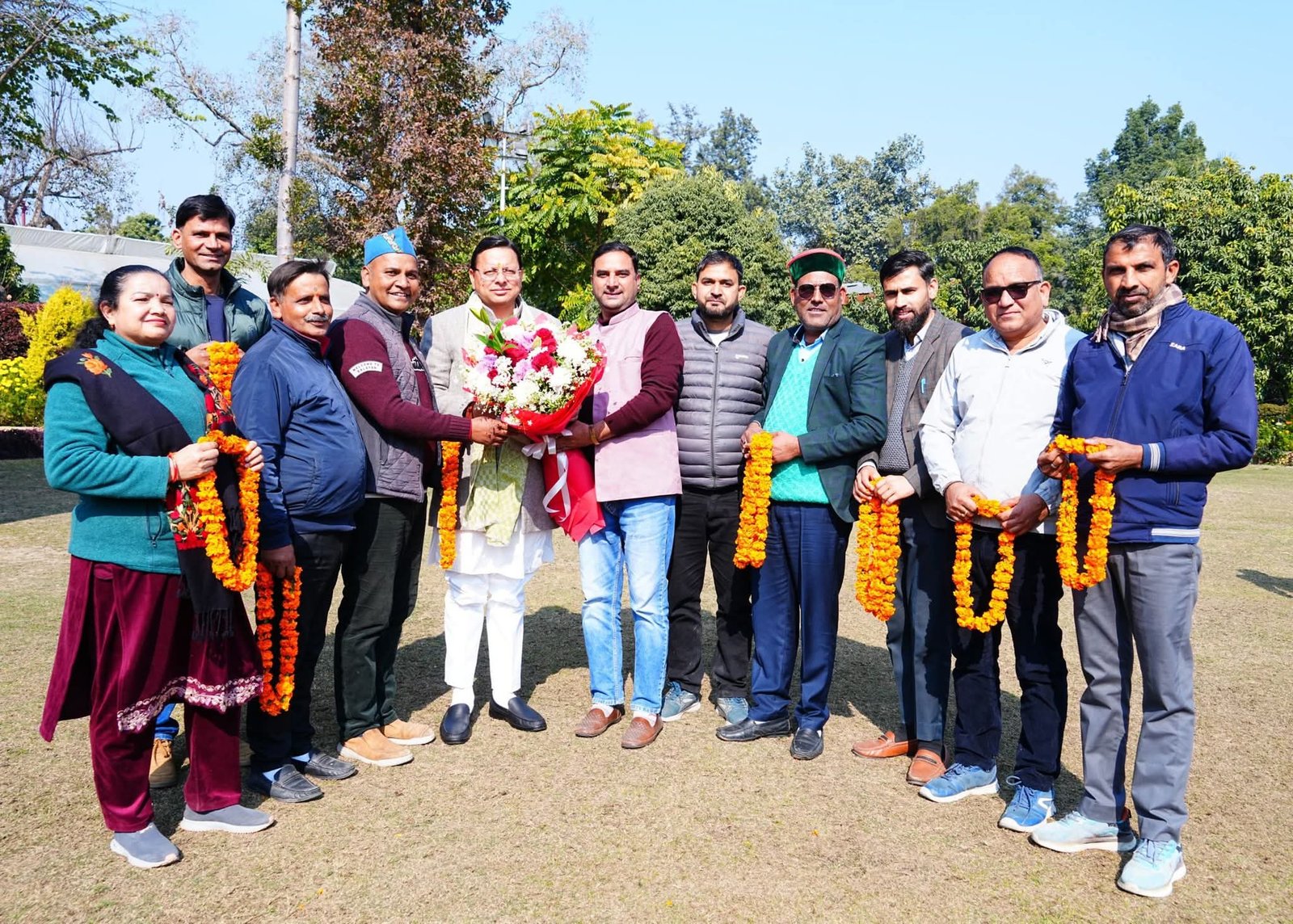 उपनल कर्मचारी महासंघ के पदाधिकारियों ने आज शासकीय आवास में मुख्यमंत्री पुष्कर सिंह धामी से भेंट कर ‘समान कार्य–समान वेतन’ संबंधी कैबिनेट के ऐतिहासिक निर्णय के लिए आभार व्यक्त किया।