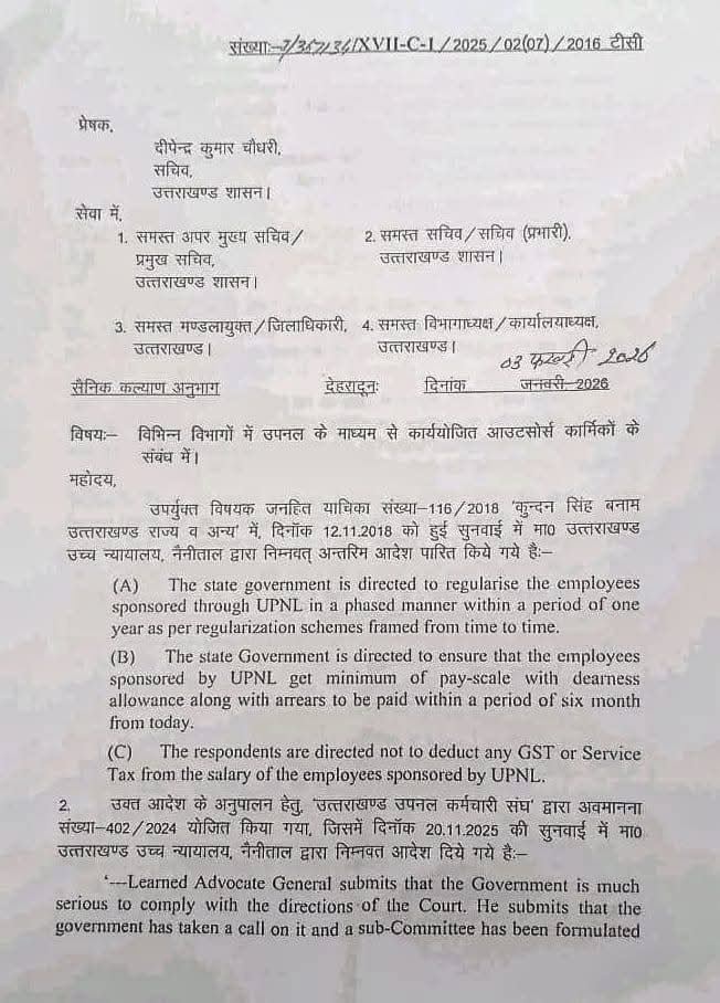 UPNL कर्मियों को दस वर्ष की सेवा पूरी करने पर समान कार्य के बदले समान वेतन दिए जाने का शासनादेश जारी होने के साथ ही, मुख्यमंत्री पुष्कर सिंह धामी के खाते में एक और बड़ी उपलब्धि दर्ज हो गई है। UPNL कर्मी अपनी विभिन्न मांगों के लिए लंबे समय से आंदोलनरत थे, इस बीच कई सरकारें बदली। आखिरकार अब मुख्यमंत्री श्री पुष्कर सिंह धामी की पहल पर UPNLकर्मियों को दस साल की सेवा पूरी करने पर समान कार्य के बदले समान वेतन मिलने का शासनादेश जारी हो गया है।