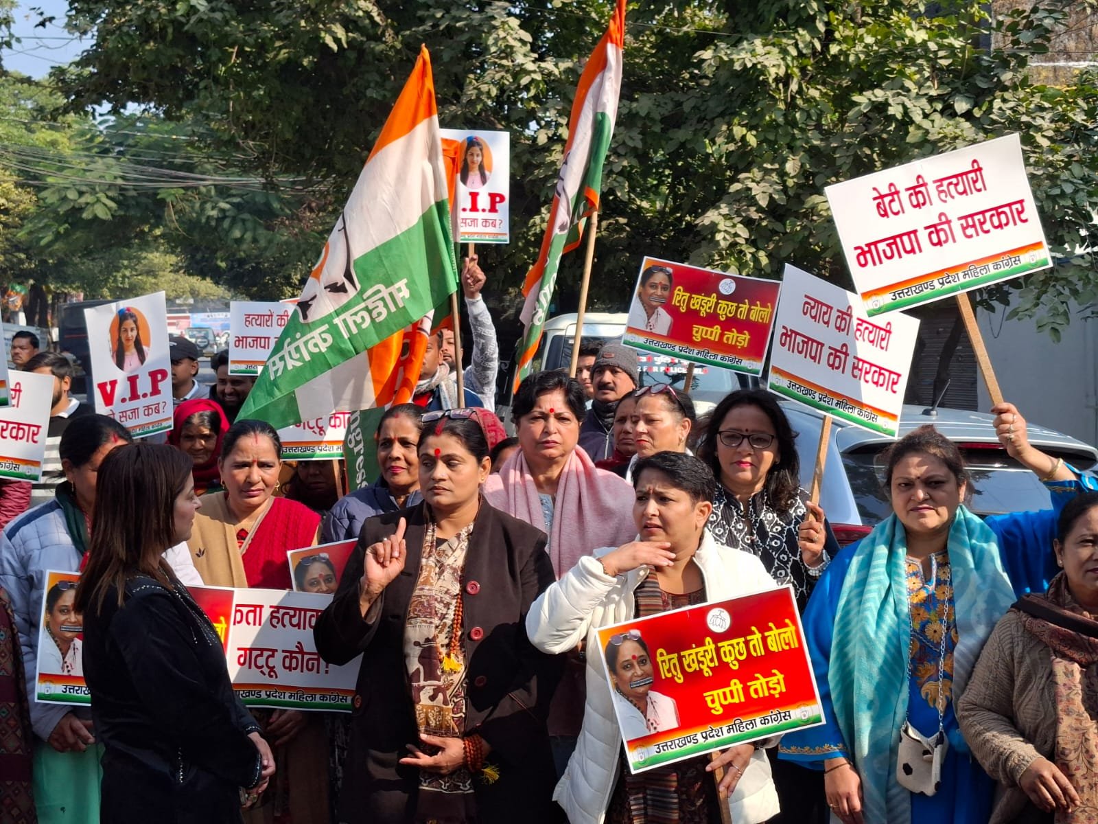 प्रदेश महिला कांग्रेस अध्यक्ष ज्योति रौतेला ने विधानसभा अध्यक्ष ऋतु भूषण खंडूरी के प्रतीक के रूप में प्रदेश महिला उपाध्यक्ष आशा मनोरमा शर्मा को पदासीन करते हुए प्रश्न पूछा कि भाजपा महिला मोर्चा के पदाधिकारी एवं भाजपा के बडबोले महिला प्रवक्ता इस मामले में क्यों चुप्पी साधे हुए हैं? हत्याकांड के सबूत मिटाने वाली विधायक रेणु बिष्ट की सदस्यता क्यों बर्खास्त नहीं की गई? क्या उन्हें प्रदेश की महिलाओं की अस्मिता एवं उनके दुःख दर्द से कोई लेना देना नहीं है? यदि भाजपा की नेत्रियां महिलाओं के प्रति जरा सी भी संवेदनशील हैं और उन्हें अंकिता भंडारी जघन्य हत्याकांड पर जरा सी भी शर्म है तो उन्हें स्वयं से दुष्यन्त गौतम के इस्तीफे और गिरफ्तारी की मांग करनी चाहिए। ज्योति रौतेला ने कहा कि विगत तीन वर्ष में प्रदेश में जितने भी महिला अपराध की घटनाएं घटित हुई। महिलाओं के साथ अत्याचार और बलात्कार की घटनायें घटित हुई हैं उनमें से अधिकतर मामलों में भाजपा नेताओं की संलिप्तता पाई गई जिसके चलते इन मामलों मे कोई भी कार्रवाई नहीं हो पाई जो उत्तराखंड राज्य की अस्मिता को कलंकित करने वाली घटनाएं हैं और इन सभी घटनाओं में भाजपा नेत्रियों ने अपने मुंह बंद रखे हैं। यहां तक कि टीवी चैनलों में धार्मिक डिवेट में गला फाड-फाड कर चिल्लाने वाली प्रवक्ता नेत्रियां भी अपने मुंह में दही जमाये बैठी हैं। इससे स्पष्ट है कि भाजपा नेत्रियों को न तो राज्य की बेटियों की अस्मिता से कोई लेना देना है और न ही अपनी पार्टी मे बैठे कुकर्मी नेताओं की कारगुजारियों से। उन्होंने विधानसभा अध्यक्ष ऋतु भूषण खंडूरी से यह भी कहा कि उन्हें एक महिला होने के नाते इस दर्द को समझना चाहिए और अंकिता भंडारी हत्याकांड के सबूत मिटाने वाली विधायक रेणु बिष्ट की विधानसभा सदस्यता को तत्काल प्रभाव से बर्खास्त करना चाहिए। घेराव कार्यक्रम में प्रदेश उपाध्यक्ष आशा मनोरमा शर्मा, चन्द्रकला नेगी, पार्षद कोमल बोरा, संगीता गुप्ता, अनुराधा तिवाडी, महासचिव निधि नेगी, पुष्पा पंवार, सुशीला शर्मा, अंशुल त्यागी, शिवानी मिश्रा, अमृता कौशल, नीरू सिंह, दीपा चौहान, देवेन्द्र कौर, आयुष गुप्ता, गौरव रावत, रितेश क्षेत्री, अभिषेक डोबरियाल आदि शामिल थे।