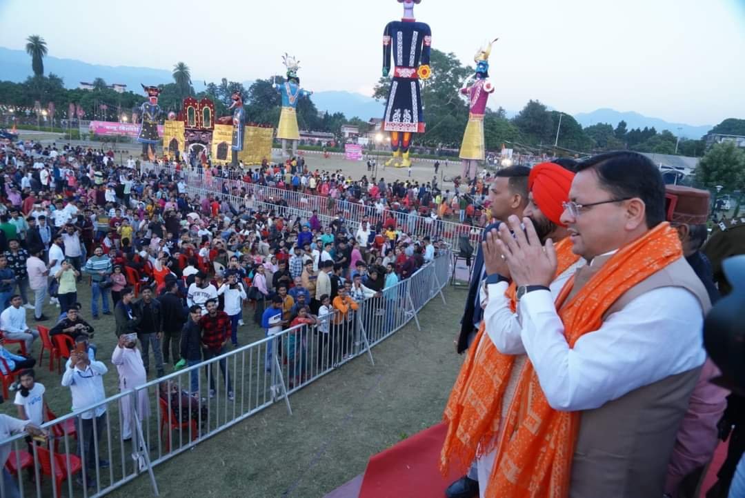 मुख्यमंत्री पुष्कर सिंह धामी आज परेड ग्राउण्ड में बन्नू बिरादरी दशहरा कमेटी द्वारा आयोजित दशहरा महोत्सव में शामिल हुए। इस अवसर पर मुख्यमंत्री द्वारा भगवान श्री राम एवं हनुमान जी की पूजा अर्चना के पश्चात रावण, मेघनाथ और कुम्भकर्ण के पुतलों का दहन किया गया।