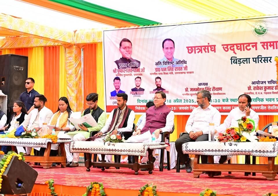 मुख्यमंत्री पुष्कर सिंह धामी ने आज हेमवती नंदन बहुगुणा गढ़वाल केंद्रीय विश्वविद्यालय परिसर, श्रीनगर में आयोजित छात्रसंघ शुभारंभ समारोह में प्रतिभाग किया। मुख्यमंत्री पुष्कर सिंह धामी ने कहा कि राज्य सरकार विश्वविद्यालयों के विकास के लिए पूर्ण रूप से प्रतिबद्ध है। राज्य सरकार विभिन्न नवीन कार्य योजनाओं के माध्यम से उत्तराखण्ड को प्रगति के पथ पर आगे बढ़ा रही है।