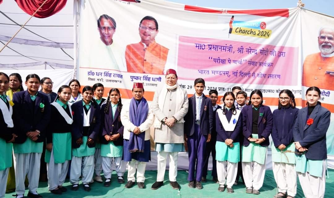 मुख्यमंत्री पुष्कर सिंह धामी ने आज G.G.I.C कौलागढ़ में विद्यार्थियों के साथ प्रधानमंत्री नरेंद्र मोदी के ‘परीक्षा पे चर्चा 2024’ कार्यक्रम में प्रतिभाग कर विद्यार्थियों को प्रधानमंत्री द्वारा लिखित पुस्तक ‘एग्जाम वॉरियर्स’ प्रदान की।