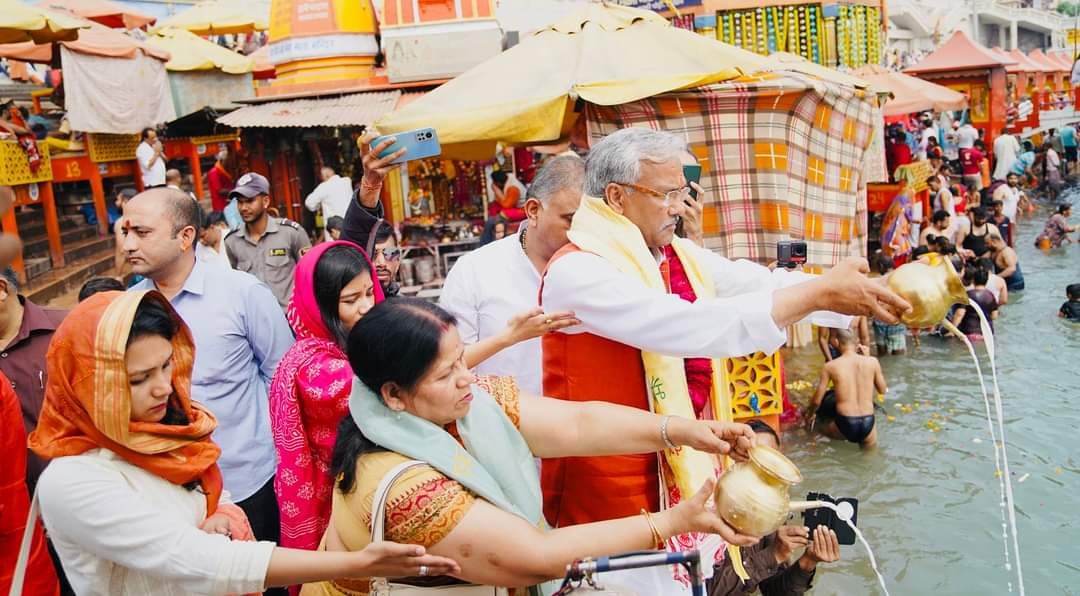 नामांकन से पहले त्रिवेंद्र रावत ने हरिद्वार में हरकी पैड़ी पर परिजनों के साथ गंगा पूजा की और मां गंगा का आशीर्वाद लिया।