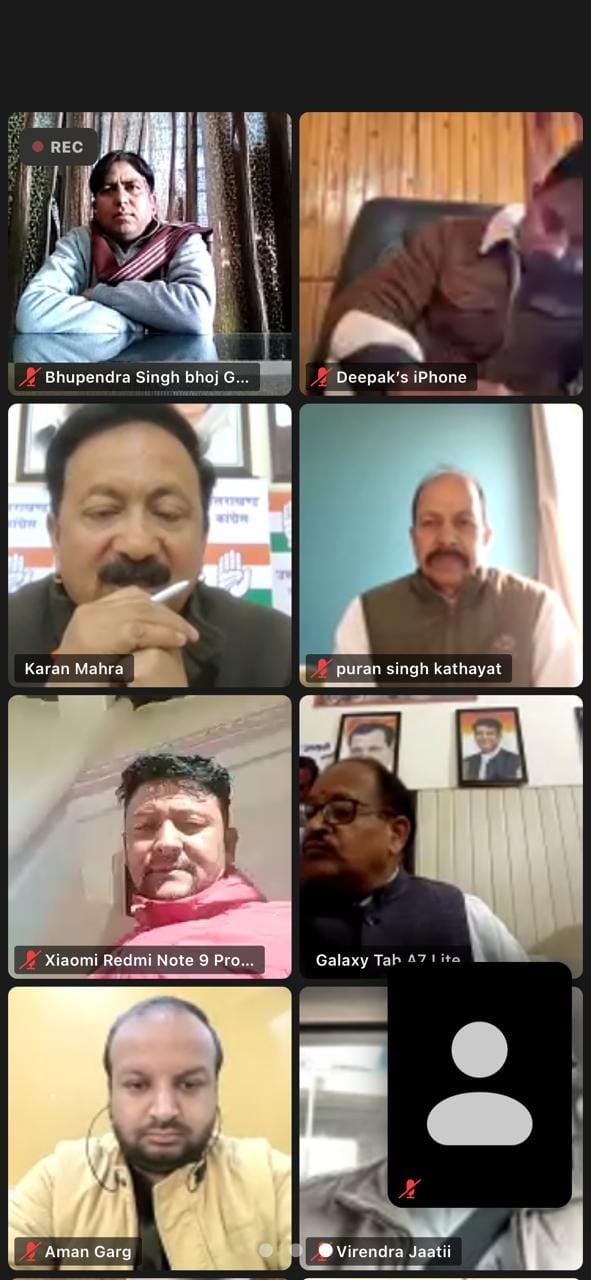 सोमवार को प्रदेश कांग्रेस मुख्यालय से प्रदेश अध्यक्ष करन माहरा ने सभी जिला एवं महानगर अध्यक्षों के साथ जूम बैठक की। बैठक में मुख्य रूप से सभी जिला एवं महानगर अध्यक्षगणों को राहुल गांधी जी की मणिपुर, इंफाल से शुरू होने वाली भारत जोड़ो न्याय यात्रा के समकक्ष उत्तराखंड में 14 से 16 जनवरी 2024 को तीन दिवसीय अंकिता भंडारी न्याय यात्रा आयोजित करने के दिशा निर्देश दिए गए।