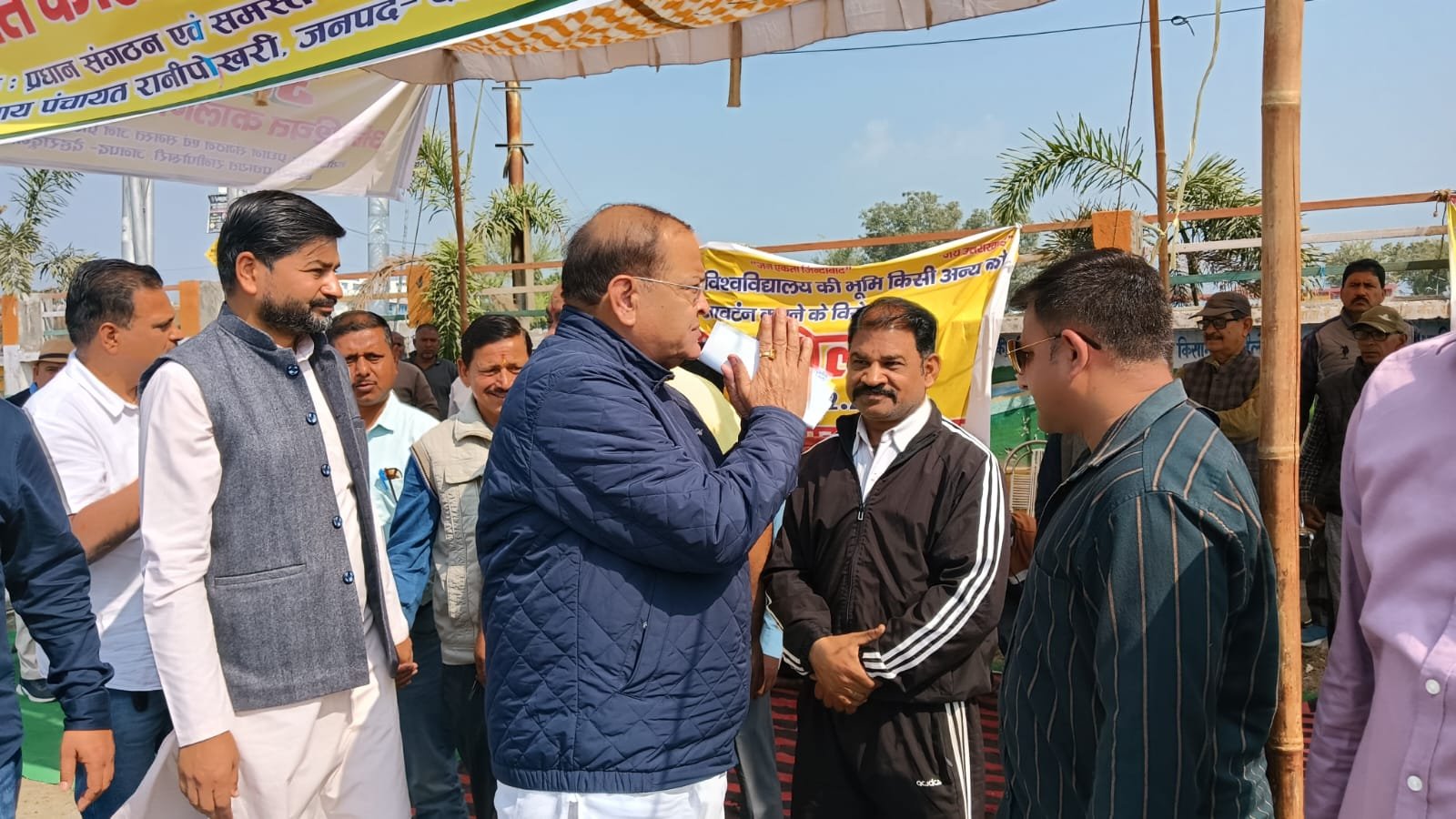 लिस्ट्राबाद रानीपोखरी स्थित विधि विश्विद्यालय के मुद्दे को लेकर ग्राम प्रधान संगठन व जनप्रतिधियों द्वारा चल रहे धरना स्थल पर आज नेता प्रतिपक्ष यशपाल आर्य पहुंचे। इस दौरान प्रतिनिधिमंडल व परवादून जिला कांग्रेस द्वारा विधि विश्वविद्यालय हेतु आवंटित भूमि को अन्य कार्यों के लिए दिए जाने के प्रस्ताव के विरोध में नेता प्रतिपक्ष को ज्ञापन सौंपा गया।